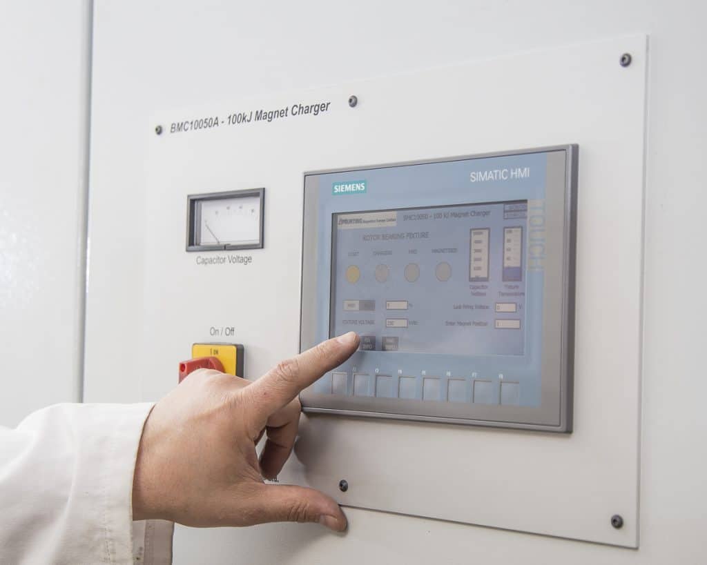 The BMC Series of Industrial Magnetisers meet the higher energy demands of the some of the more complex industrial applications. The modular construction enables the supply of BMC Magnetisers to suit a wide range of energy levels, with different voltage and capacitance configurations depending on the application, as well as multiple magnetising fixture outputs. The Magnetiser is PLC controlled and interfaces with a customer's own production systems. These Magnetisers suit most industrial applications, from simple two-pole fixtures to high-energy multi-pole magnetisation such as flywheels, permanent magnet rotors or traction motors.